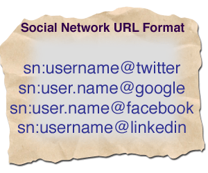 For brevity, the URLs could simply be in the format @username@twitter , @username@facebook , @username@linkedin and @user.name@google If such shorter forms are adopted, then each social network’s brand name could be registered via a system of registries or it could default to .com if the full domain name isn’t specified. We could also have shortcuts like @rajiv.pant@fb or fb:@rajiv.pant since Facebook owns the fb.com domain at the fb: URL schema on iOS.