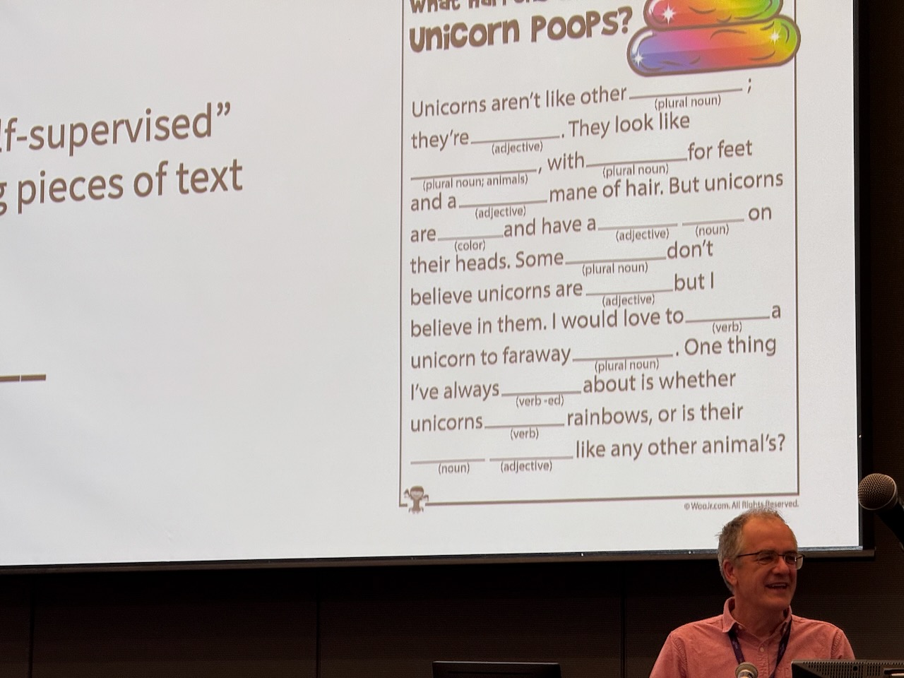 At Stanford HAI’s First Workshop on Public AI Assistants and World-Wide Knowledge (WWK), Professor Christopher Manning, one of the world’s foremost experts in Natural Language Processing, used an insightful example to explain how LLMs learn. His slide, structured like a Mad Libs-style fill-in-the-blank exercise, visually demonstrated how models predict missing words based on context. It was strikingly similar to my “Culinary Code” analogy, reinforcing the idea that AI learns by recognizing patterns in data, much like how chefs follow and refine recipes over time.