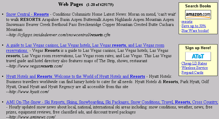To her dismay, the "Web Pages" search brought back results from resorts in Denver, Las Vegas and several other places. Most of the sites returned on top were not related to Bahamas. They didn't even contain the word Bahamas in them.